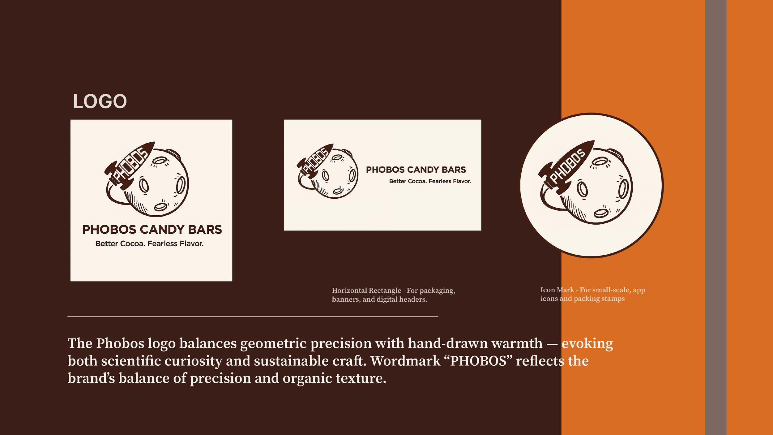 A conceptual brand identity for Phobos Candy Bars: a sustainable, cocoa-forward chocolate company. From logo to packaging to motion storyboard, this project brings together art direction, visual systems, and campaign strategy.